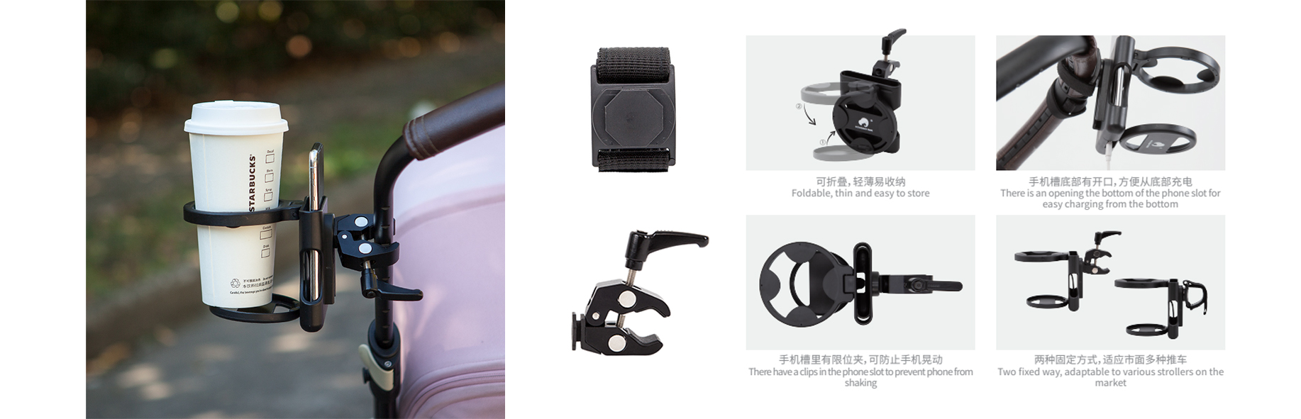 婴儿车杯架推车杯托奶瓶咖啡杯推车配件