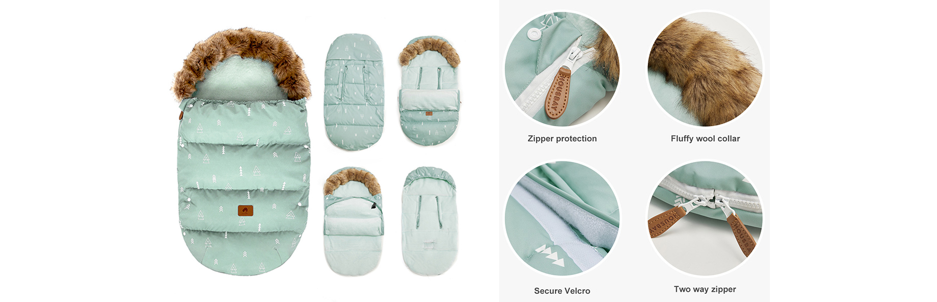 锁温保暖,防水防油的外出睡袋,适用于任何婴儿推车车型